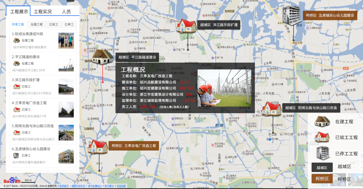 功能特点:1、通过无人机对一个地区范围内的重点建设项目进行空中航拍,并经过后期专业GIS软件处理,形成高清航拍影像GIS地图;2、基于GIS地图,嵌入项目管理信息,包括项目工程概况、人员信息和安装在工地现场高清摄像头的实时视频信号;3、地区级GIS地图系统平台既可安装于业主单位监控中心视频服务器电脑上,又可运行于管理人员手机上。