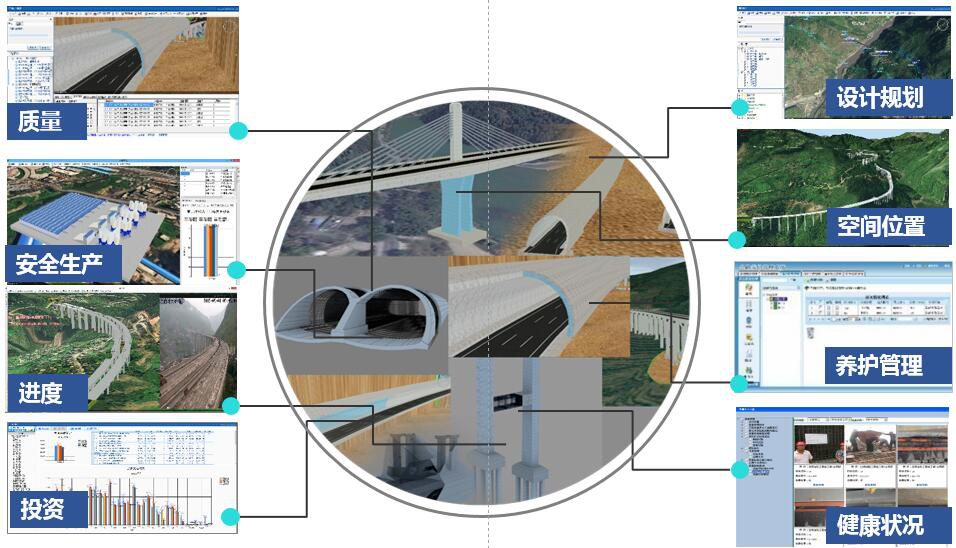 与BIM技术结合:以BIM技术为核心,建设数字交通路网和数字交通建设管理云平台,共享和传递规划设计、建设管理、运营养护等全生命期的信息;实现“互联网+工程建设、管理、养护”一体化全生命周期管理。