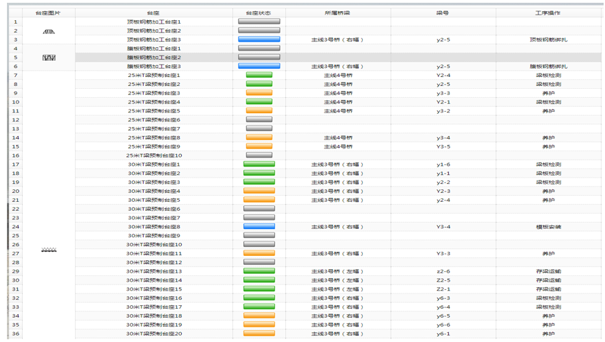 预制梁场台座状态一览表