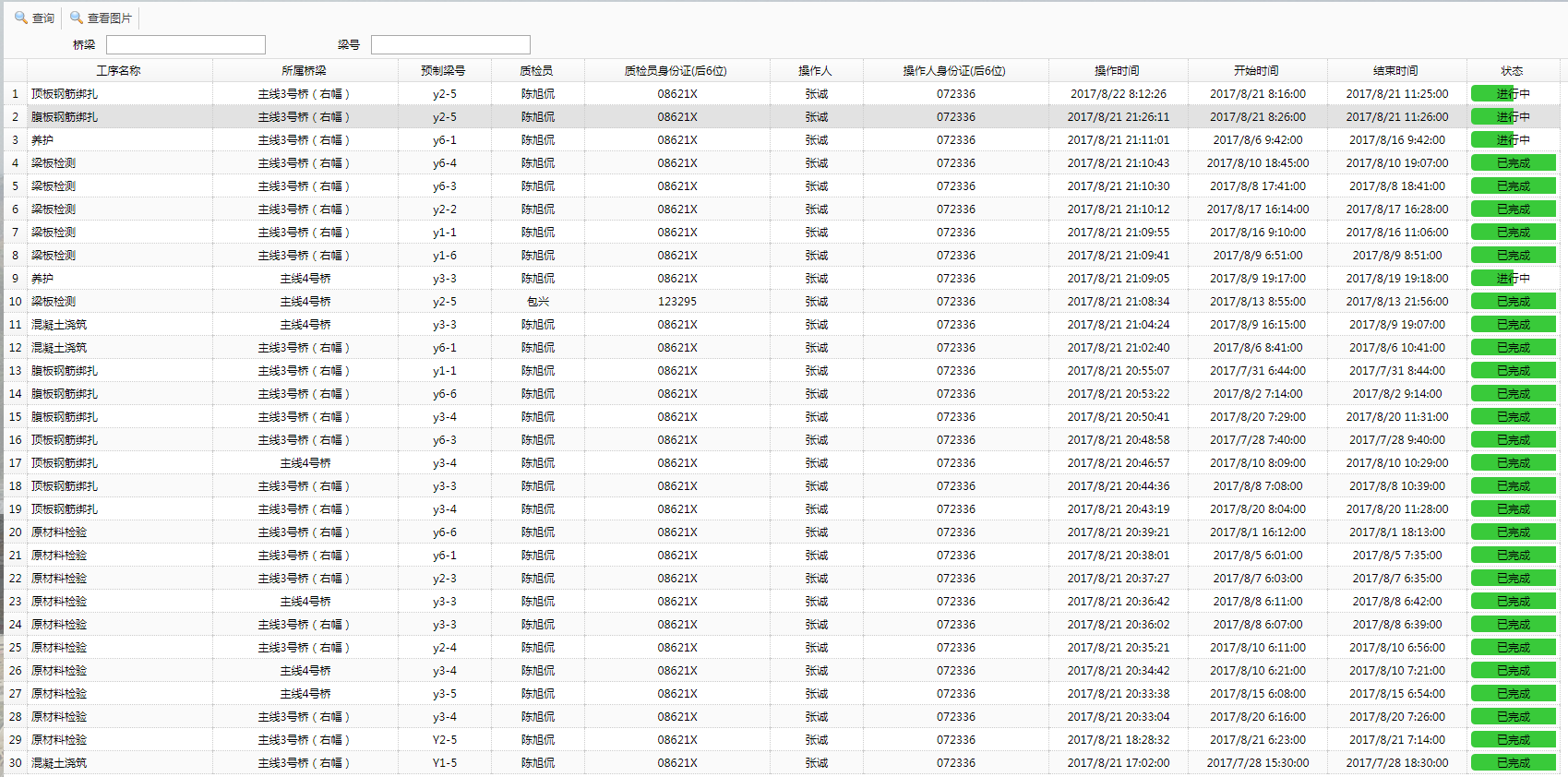 预制梁工序操作状态列表(责任落实到人)