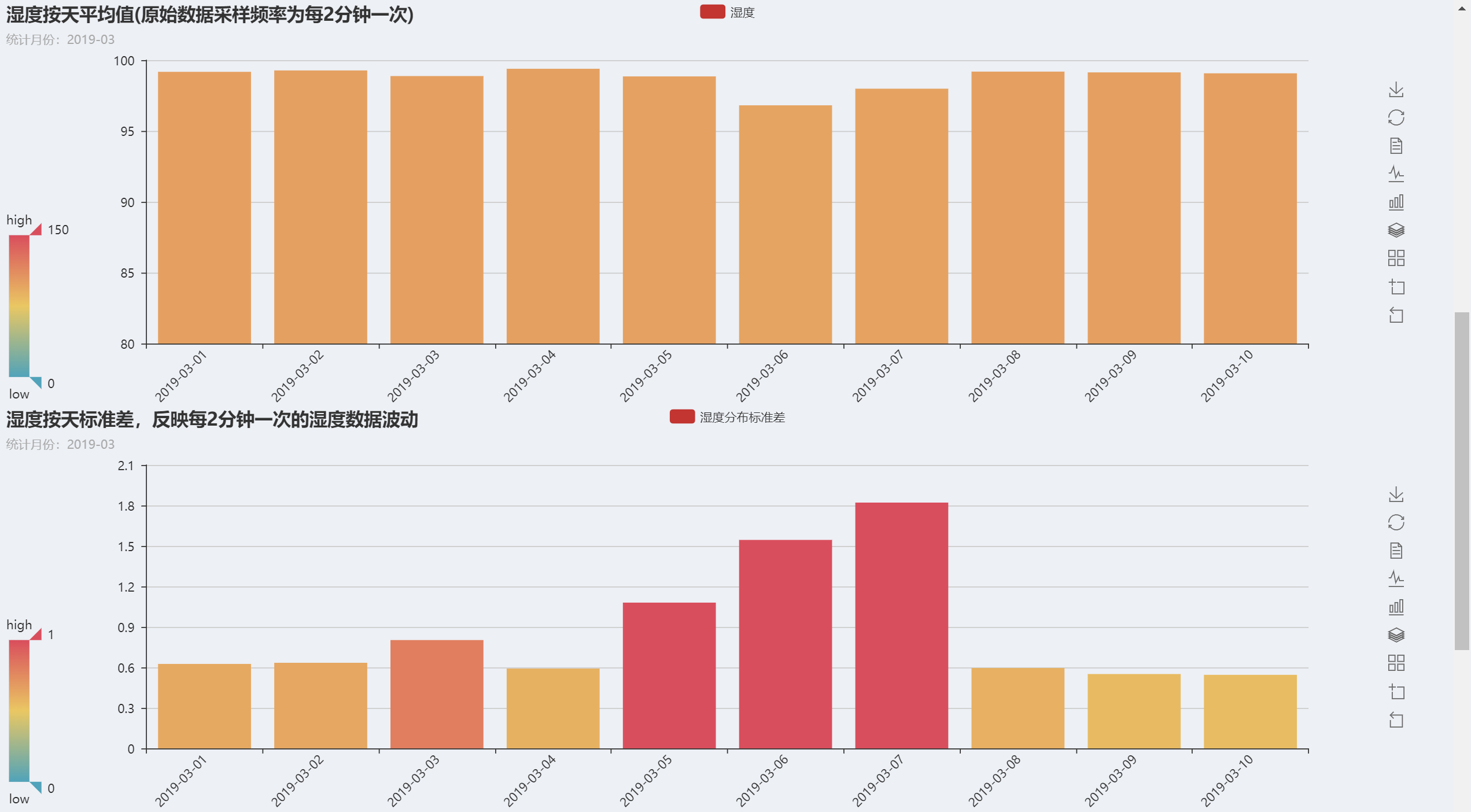 按每天统计湿度平均值和当天温度波动情况(原始数据标准差)