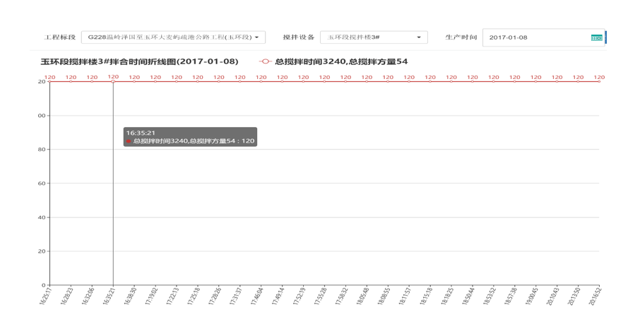 将每盘料的搅拌时间进行实时采集并形成走势图,分析搅拌时间的稳定性。